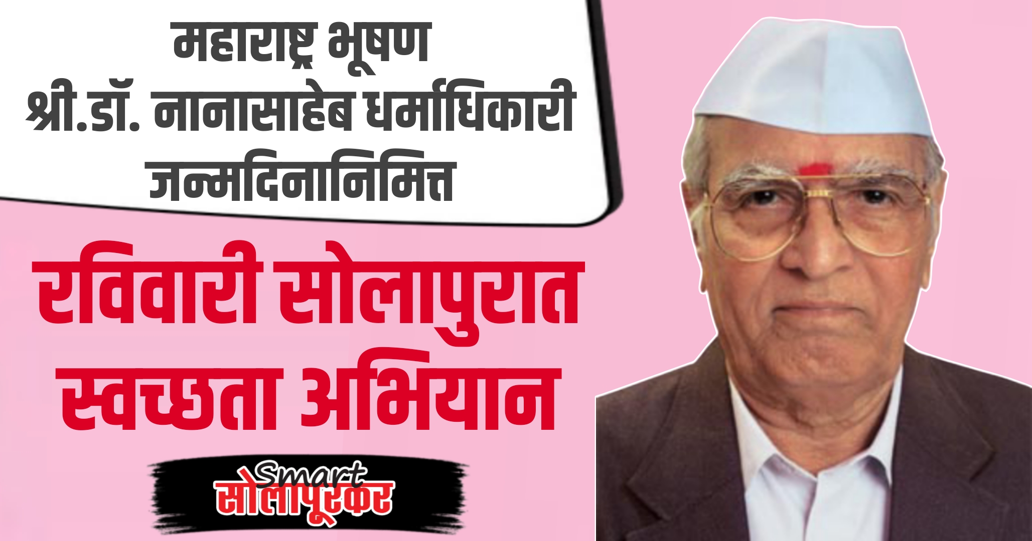 Dr Nanasaheb Dharmadhikari Pratishthan Solapur Swachhata Abhiyan सोलापूर : पद्मश्री पुरस्काराने सन्मानित, महाराष्ट्र राज्याचे स्वच्छता…..
