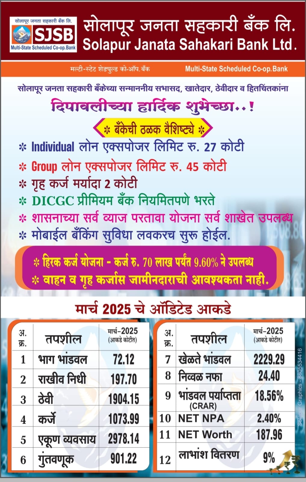 ADVT : सोलापूर जनता सहकारी बँकेकडून दीपावलीनिमित्त शुभेच्छा!